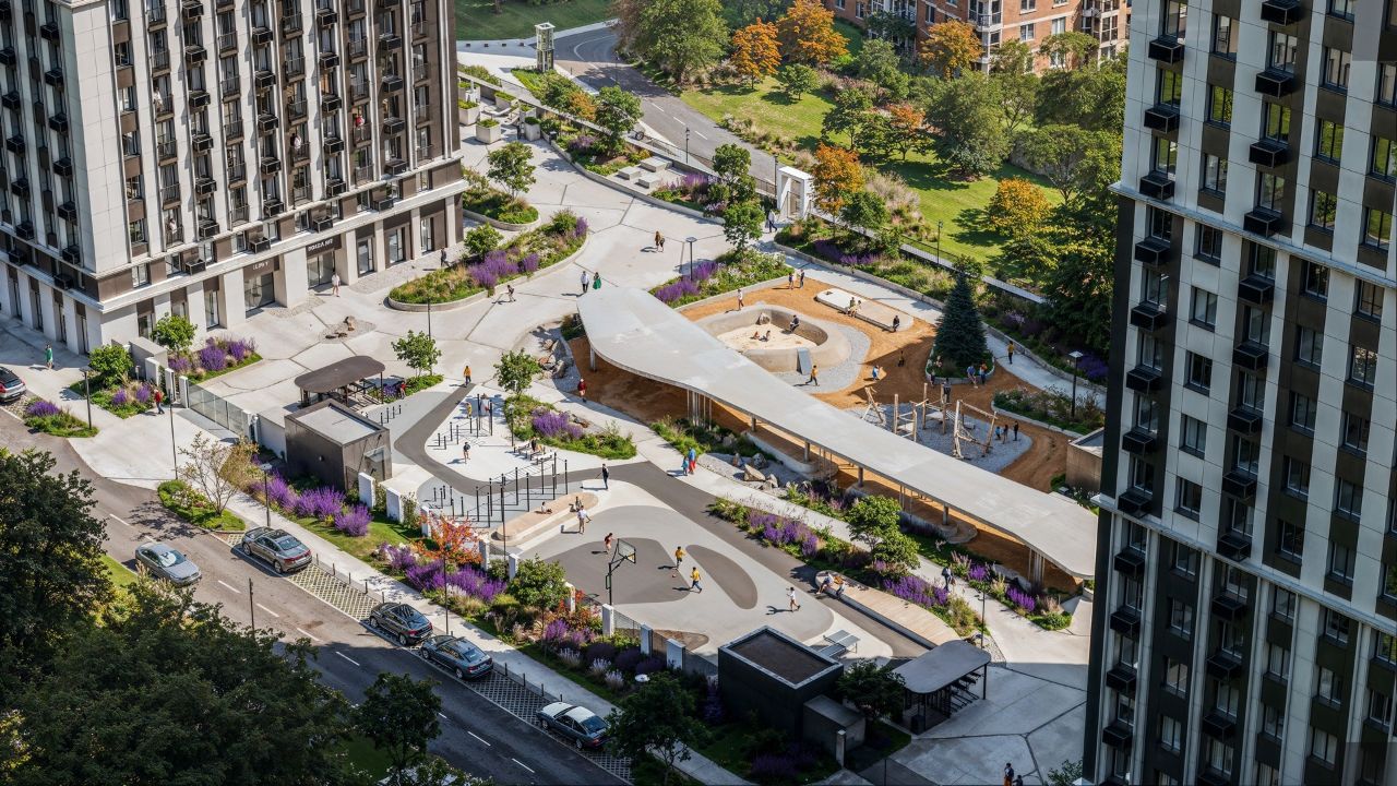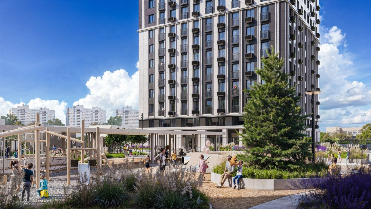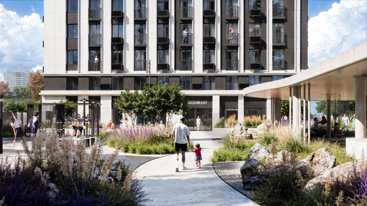 Придомовая территория полностью освещена, во дворе много зелени и работает видеонаблюдение. Есть детская и спортивная площадка, а в планах — футбольное поле с хоккейной коробкой для активного отдыха в любое время года.